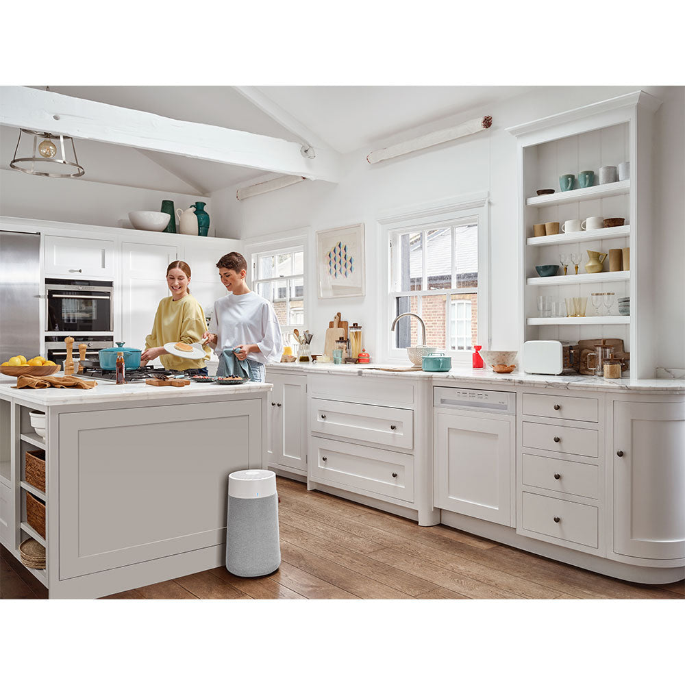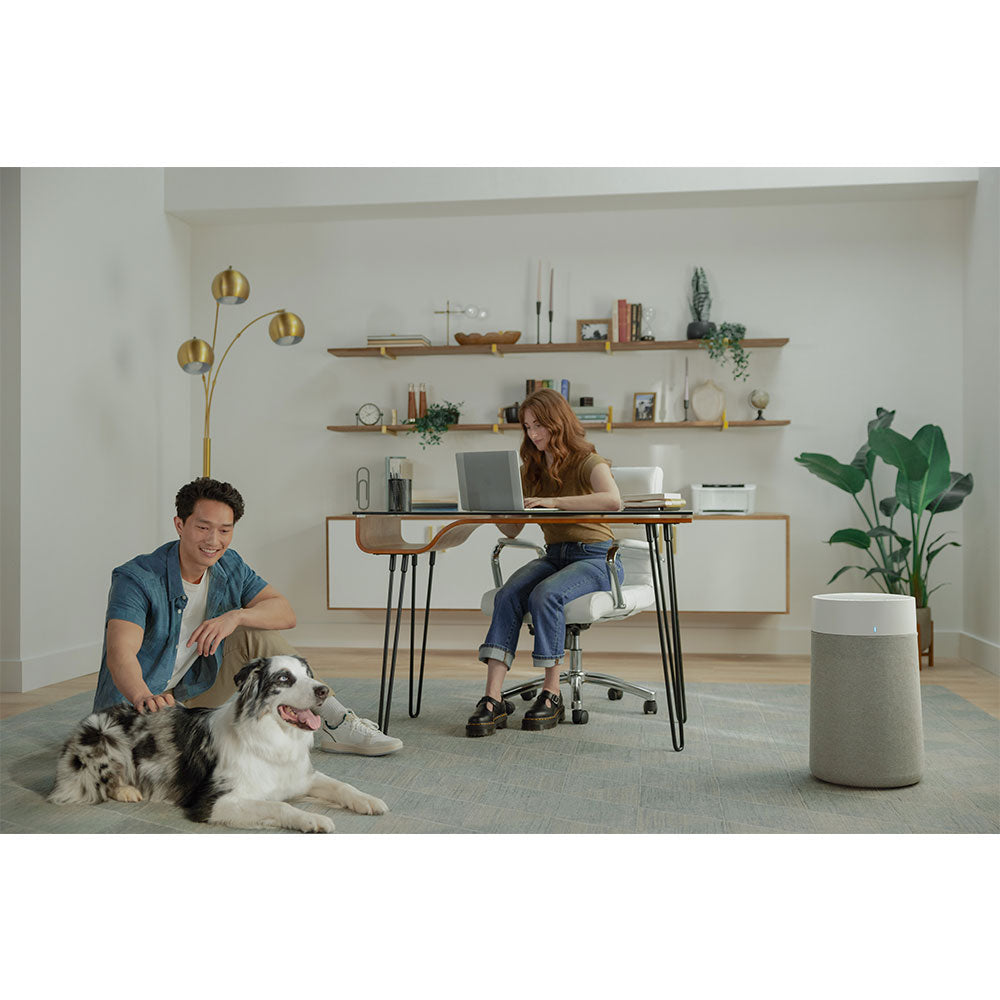 Blueair's signature HEPASilent™ performance - now up to 83% faster cleaning with up to 50% less noise. The Blueair Blue Max 3450i Air Purifier combines electrostatic and mechanical filtration to capture at least 99.97% of airborne particles down to 0.1 micron in size.