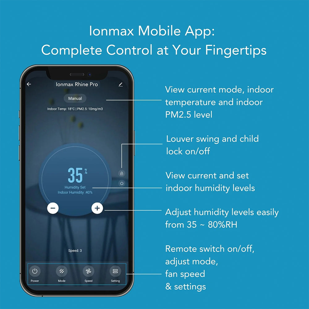 Experience total air control with a single device that adapts to your needs. Use it as a powerful air purifier to remove allergens and pollutants, or activate the dehumidifier mode to eliminate excess moisture while purifying your air simultaneously.