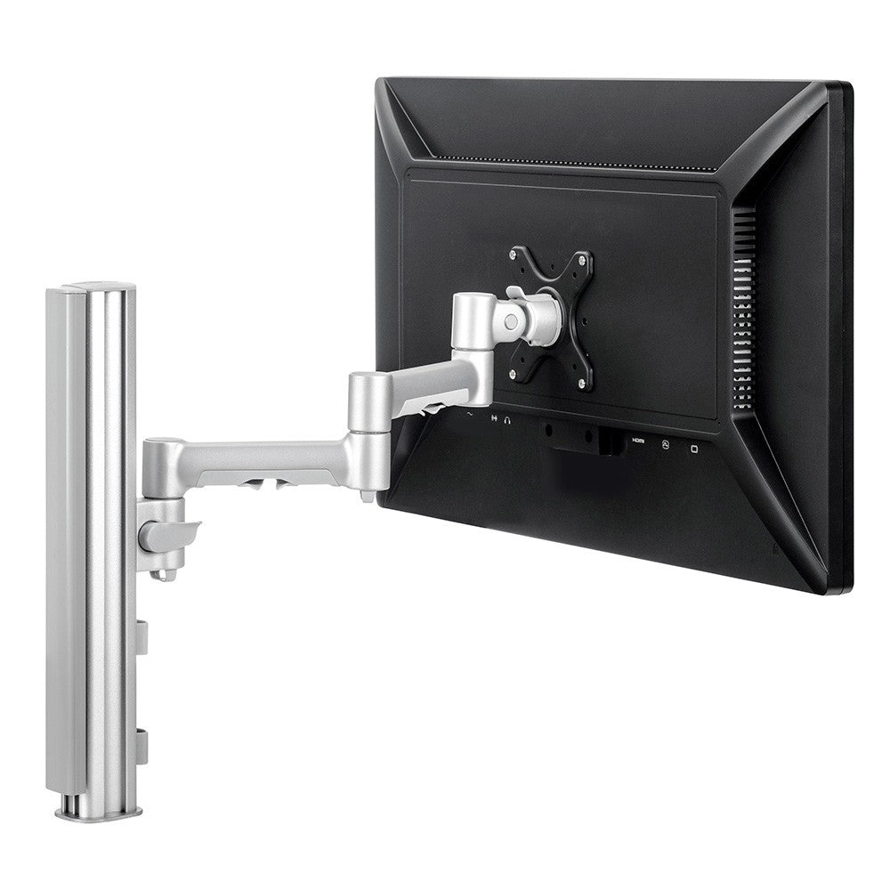 SYSTEMA range single display desk mount. 460mm articulated arm on 400mm post. Supports displays up to 12kg. VESA 75x75mm & 100x100mm.