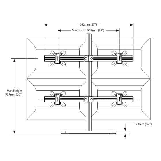 SYSTEMA AWMS-4-4675-H-S desk mount for 4 displays on 750mm post. 4 x 460mm arms support...